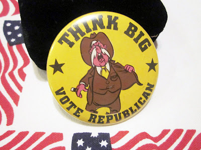 I don't know about you, but I'm VERY happy election day is finally here! As we were driving to the church where we vote (they also had a bake sale going on this year - bonus!) I got to thinking - I bet there are some great vintage Democrat and Republican collectibles out there. Who would win in a showdown based on which party has the coolest collectibles? Here is what I dug up - feel free to cast your vote in the comments - but make sure it is based on the stuff and not your political leanings! :)