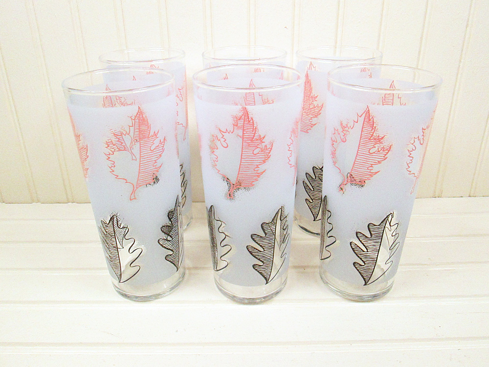 Vintage Libbey Pink Leaf Drinking Glasses Set