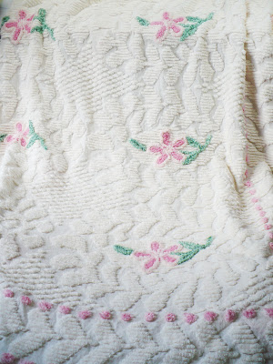 Vintage Chenille Bedspread Full Double Size Pink White Floral