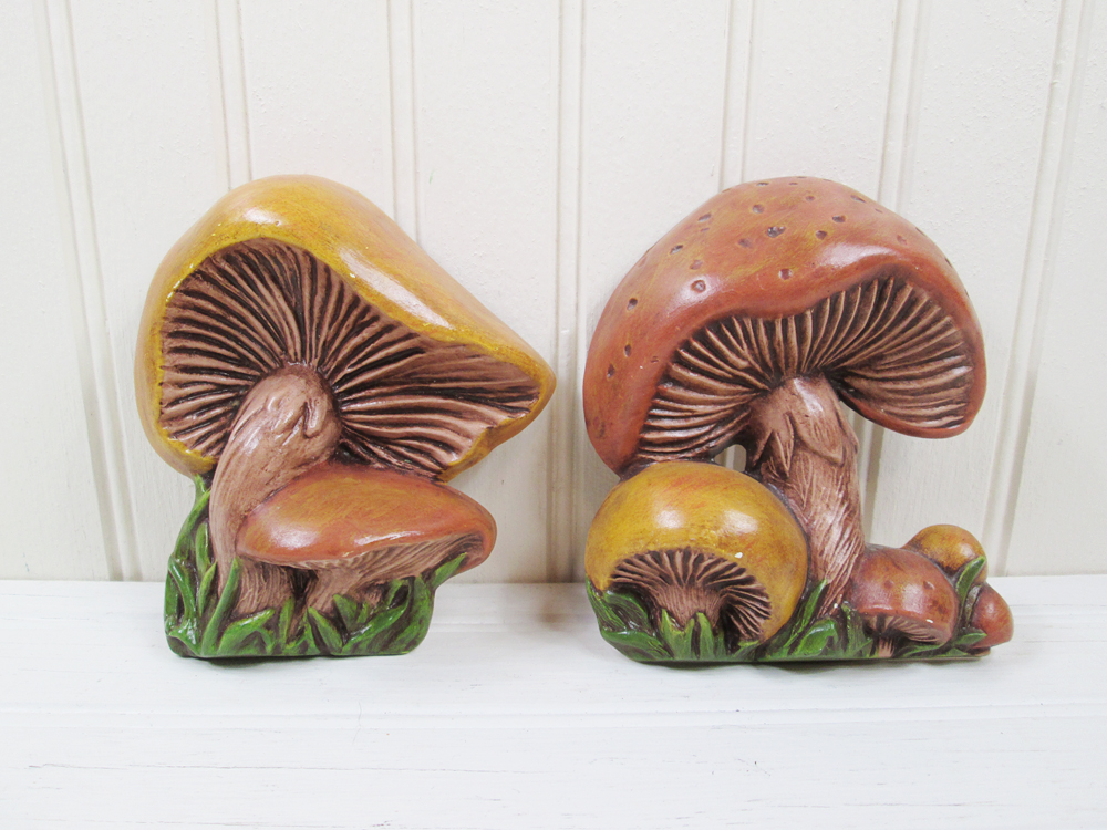 Vintage Ceramic Mushroom Wall Plaque Set