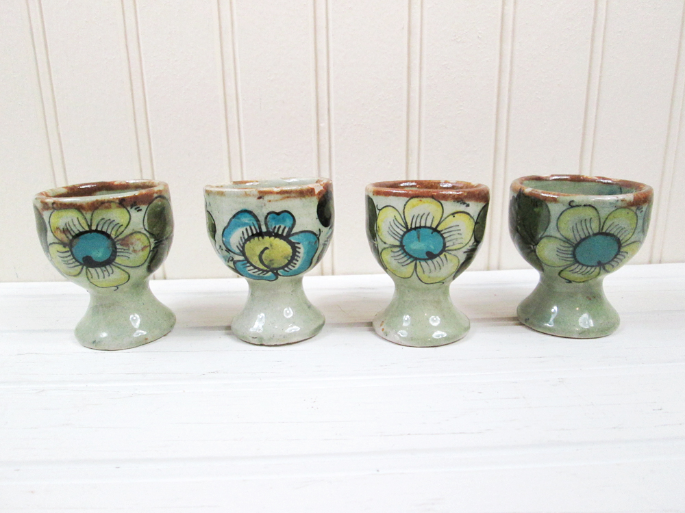 Vintage Mexican Pottery Egg Cups Set